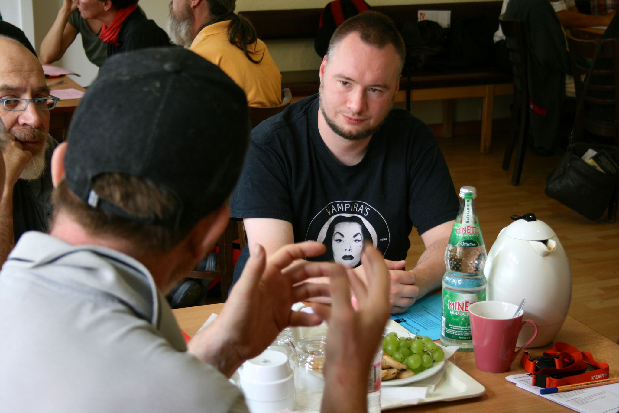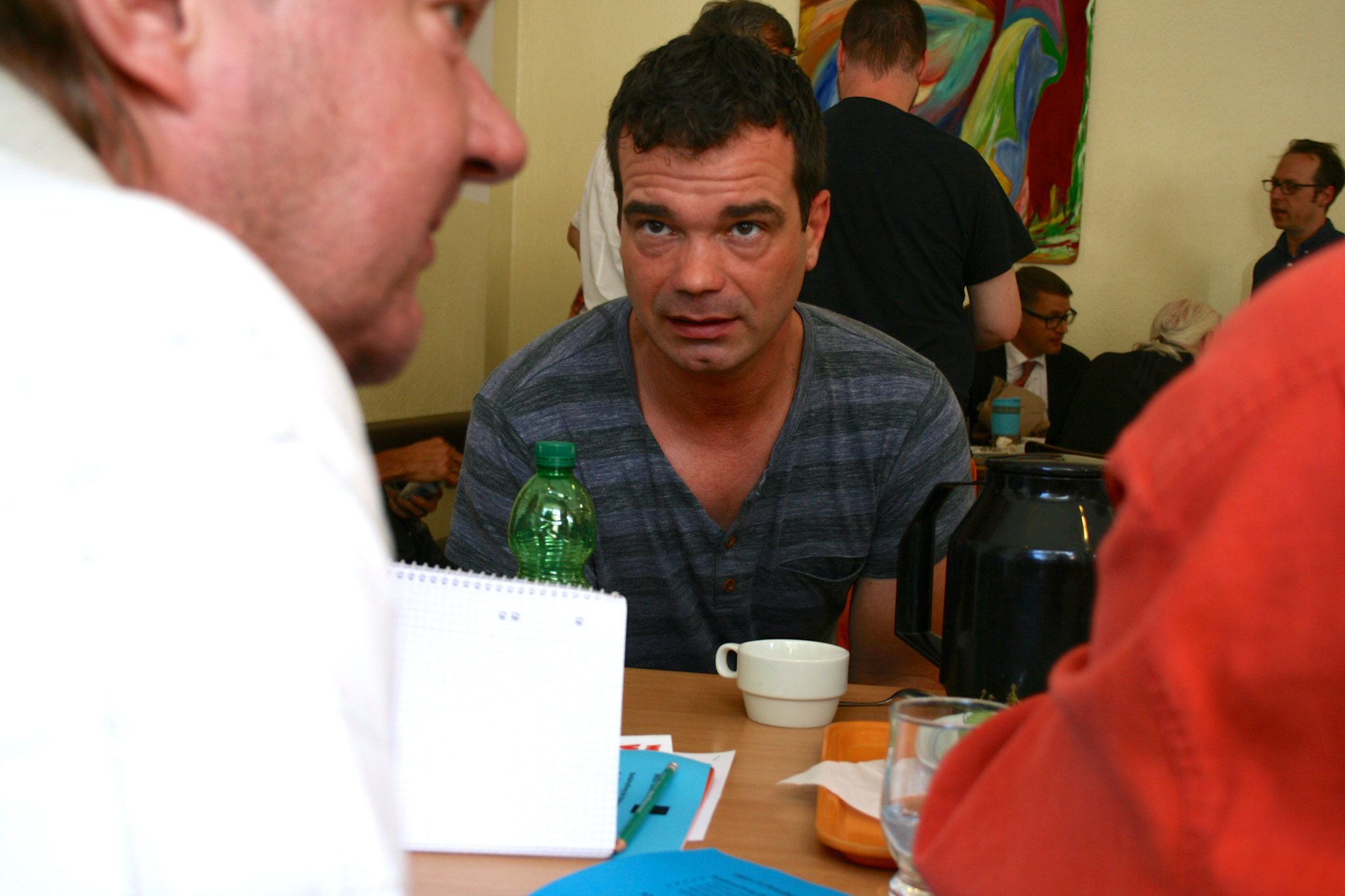 4. August 2016: WIR KOMMEN WÄHLEN!-Veranstaltung im Brückeladen der GEBEWO - Soziale Dienste - Berlin gGmbH. Es diskutierten: Gernot Klemm, Stadtrat für Arbeit, Soziales und Gesundheit (Die Linke), Katalin Gennburg (Die Linke), Lars Düsterhöft (SPD), Sascha Lawrenz (CDU), Harald Moritz (Bündnis 90/Die Grünen) und Georg von Boroviczeny (Piraten).