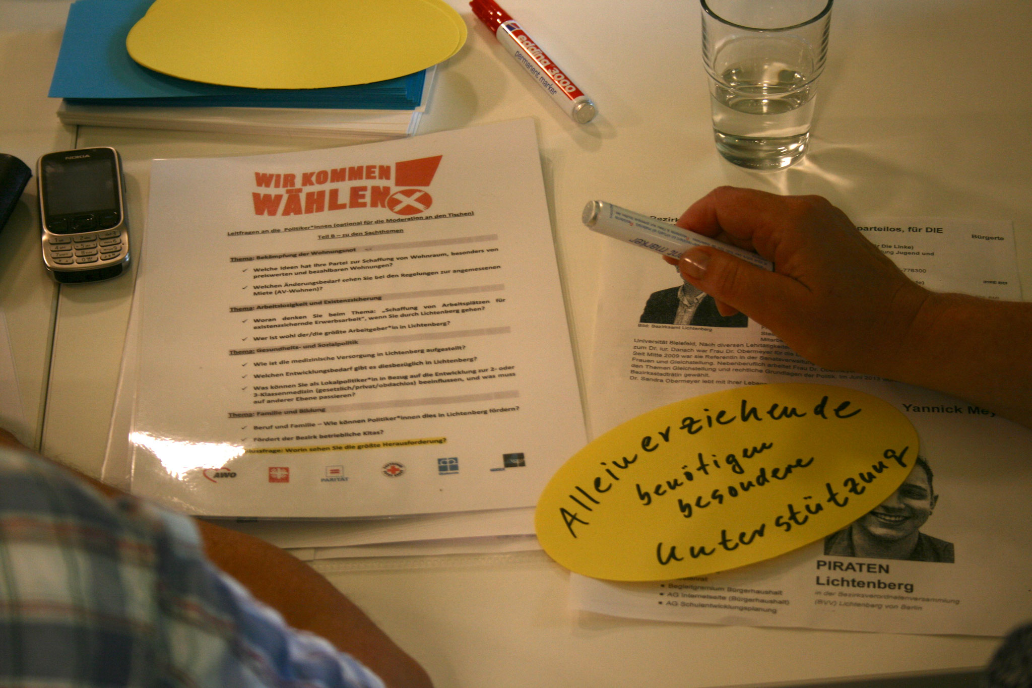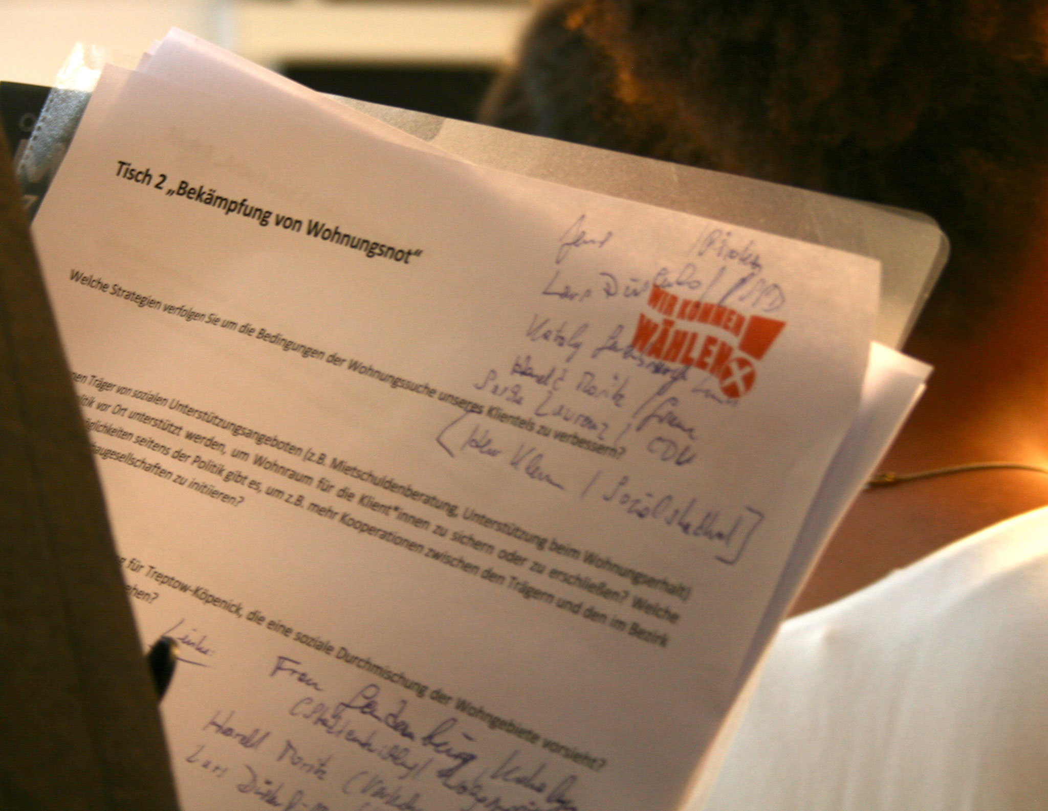 5. September 2016: Die Lichtenberger Arbeitsgemeinschaft der Wohlfahrtsverbände luden in das JFE HolzHaus des magda Caritas Jugendzentrum in der Gotlindestraße zu WIR KOMMEN WÄHLEN!. In den tollen neuen Räumlichkeiten hatten die Organisator*innen alles im Griff: Die Verantwortlichen aus der Politik stellten sich den vielfältigen Fragen der Menschen vor Ort rund um die Themen Wohnen, Familie und Bildung, Arbeitslosigkeit und Existenzsicherung sowie Gesundheit und Soziales.
