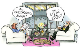 Den Startschuss haben wir mit einer Postkarte gegeben, die ein Motiv der Karikaturistin Barbara Henniger zeigt. Die in Strausberg lebende gebürtige Dresdnerin ist eine der bekanntesten ihrer Zunft, mit Preisen überhäuft und ein Leben lang politisch engagiert. Sie hat das Motiv "Armutsrisiko" exklusiv für uns gefertigt und sich mit einem Grußwort an uns gewandt: